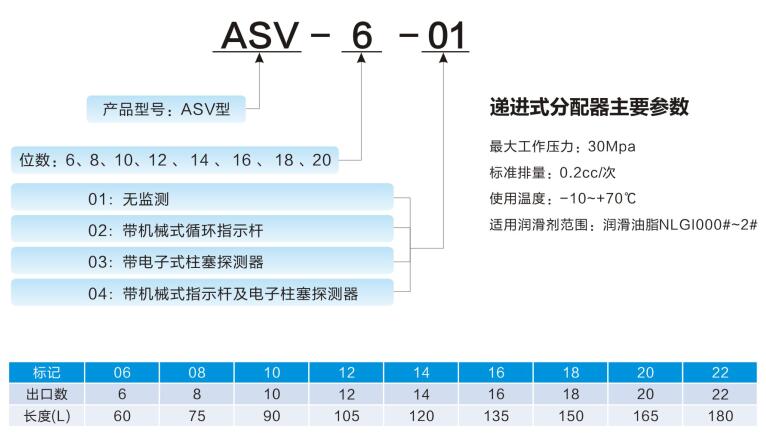 整體式遞進式分配器ASV可在集中潤滑系統(tǒng)中為各潤滑點提供計量潤滑,具有節(jié)能,精準的優(yōu)點。主要應用風力發(fā)電機、車輛工程機械、造紙機械、紡織機械等設備上。